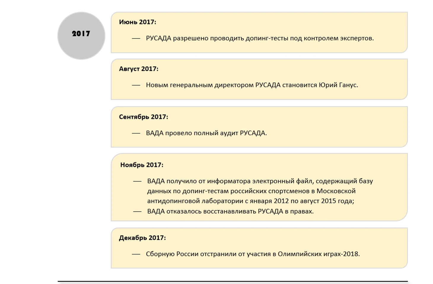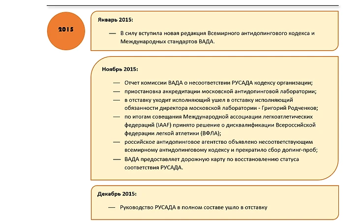 Будущее российского спорта все еще находится в подвешенном состоянии и ждет решения международного антидопингового агентства. На фоне данного разбирательства в Москве развернулось собственное дело о коррумпирование главы национальной антидопинговой лаборатории. В нашем материале мы восстановили хронологию главных событий, чтобы вы оставались в курсе самого громкого допингового скандала в истории современного спорта.