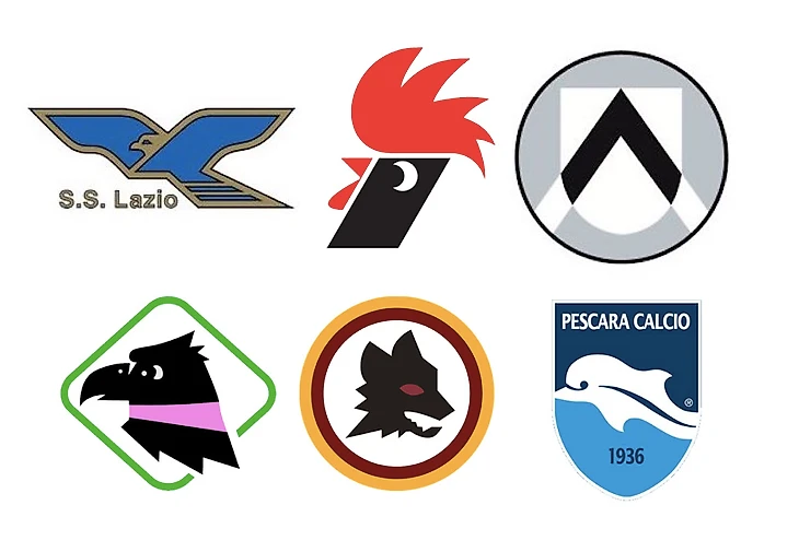 Логотипы «Лацио», «Бари», «Удинезе», “Палермо”, “Ромы” и “Пескары”, разработанные Граттоном