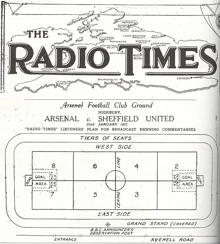 Однажды Мейрик Гуд предложил не только сообщать по радио результаты скачек, но и рассказывать, что происходит во время гонки. Так в 1927 году состоялся первый спортивный репортаж. Правда, с этим заявлением могут поспорить жители Новой Зеландии. Там вам расскажут, что еще в 1926-м Аллан Аллардайс впервые прокомментировал матч по крикету. Зато по поводу футбола разночтений нет: в 1927 году Джордж Эллисон в прямом эфире рассказал о происходящем на поле в игре «Арсенал» – «Шеффилд Юнайтед». Это была первая футбольная трансляция в истории.