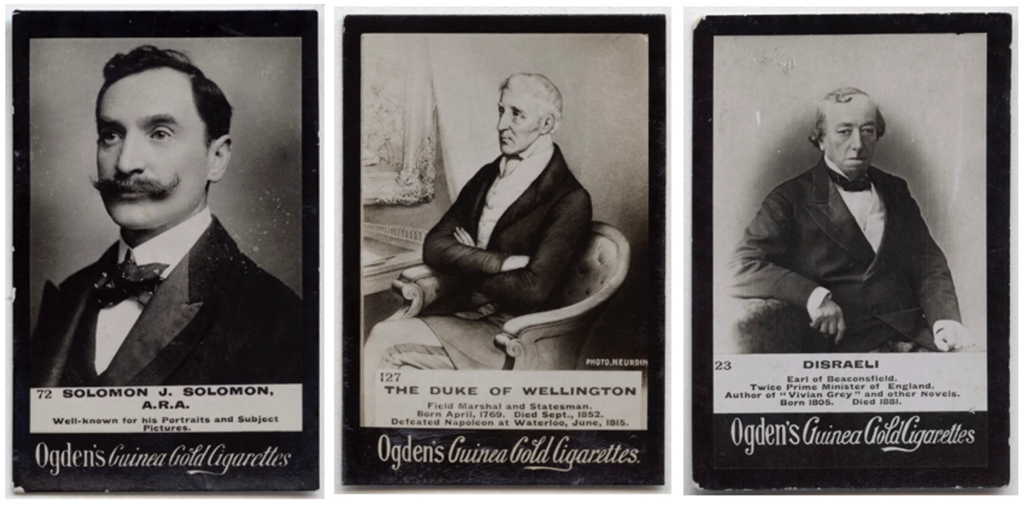 В том же 1887 году новшество переняли британские фирмы W.D. & H.O. Wills и Ogdens – они прошли тот же эволюционный путь, что и Allen & Ginter. В Англии одна из первых серий называлась Guinea Golds, ее посвятили известным людям – писателям, политикам и ученым. В народе карточки прозвали энциклопедией рабочего, так как они были доступнее книг, а на обратной стороне содержалась краткая справка, почему портрет этого человека поместили в пачку сигарет.