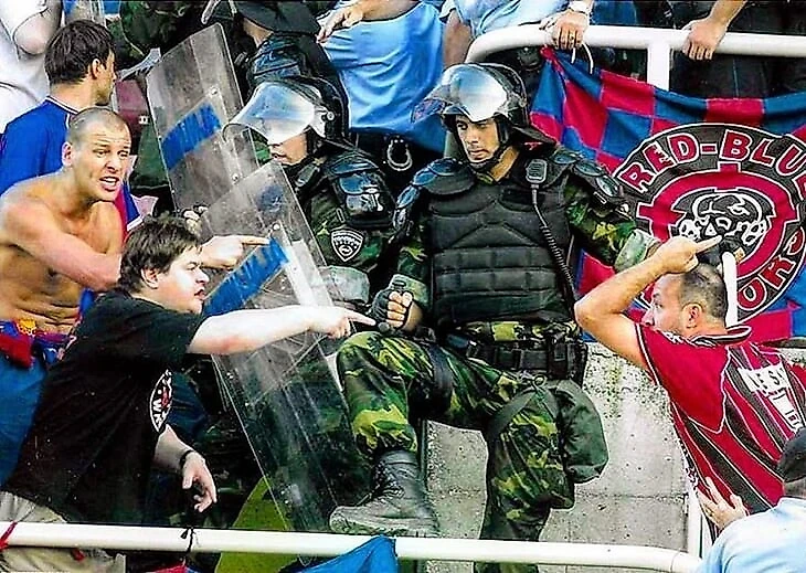 Возможно, если бы гостевой сектор располагался ближе к фанатской трибуне «Комити», все было бы иначе. Но болельщики ЦСКА соседствовали с албанской группировкой, поэтому после нескольких брошенных файеров завязалась потасовка. Спустя 17 лет эту историю у себя в фейсбуке вспомнил Андрей Малосолов. Он был среди тех 240 болельщиков ЦСКА: