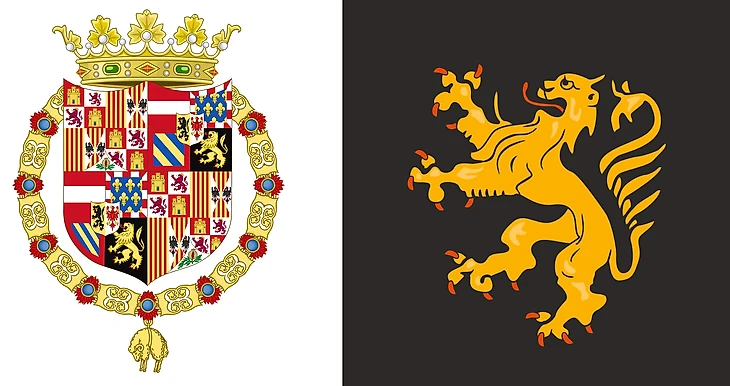 Вздыбленный лев украшает гербы многих стран и городов. В позднем Средневековье символ, иpображенный на черном фоне, ассоциировался с нидерландской провинцией Брабант. Тогда все эти земли находились под властью Габсбургов. Самая могущественная европейская династия в XVI веке правила также в Испании, Австрии, Хорватии, частично нынешних Венгрии и Румынии, а также на Сардинии, Сицилии и Апеннинах. Это была колоссальная по размерам империя, которая, впрочем, вскоре распалась.