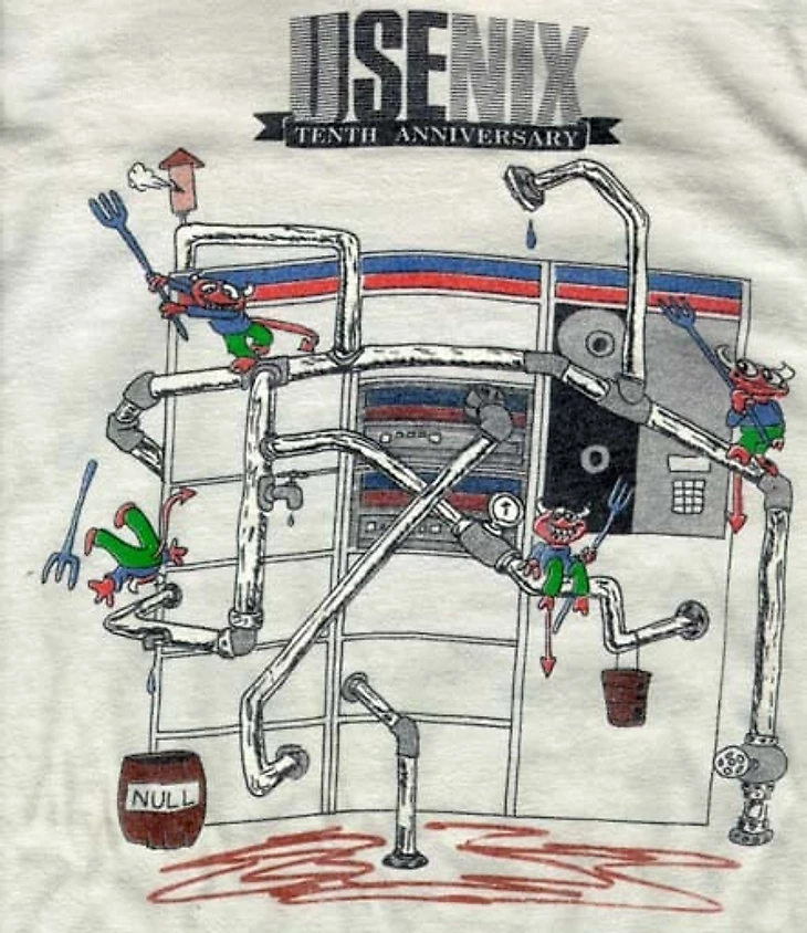Майк увлекался компьютерами и принес Фоглио фотографию с изображением PDP-11, сделанную на Polaroid. PDP-11 был компьютером размером со шкаф, который работал на операционной системе Unix. О’Брайен также рассказал, что хотел бы видеть на футболке: трубы и дьяволят с трезубцами. Это был каламбур, завязанный на компьютерной терминологии – /dev/null, pipeline и так далее.