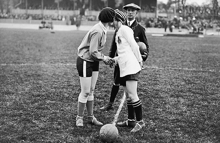 В Британии женский футбол тоже развивался: когда во время Первой мировой рабочие заводов ушли на фронт, их должен был кто-то заменить. На предприятия брали женщин, и они быстро переняли привычку мужчин играть в футбол после смены.