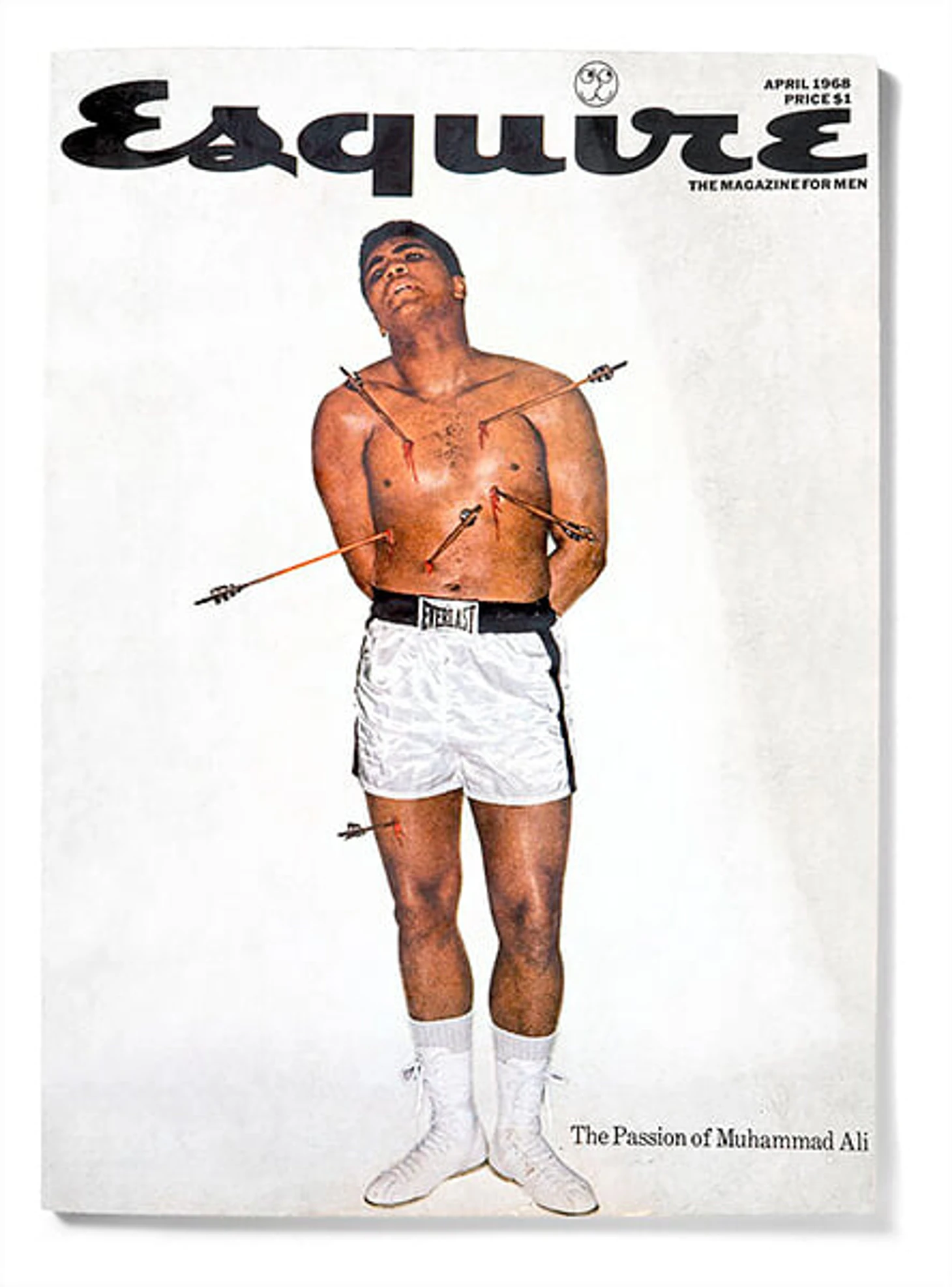 Суд приговорил боксера к пяти годам тюрьмы, но на время апелляции ему позволили остаться на свободе. Кроме того, Али должен был заплатить 5 тысяч долларов штрафа, а еще ему на три года запретили участвовать в боях. В провластной прессе Мохаммеда унизительно назвали уклонистом и изменником – в ответ на это в апреле 1968-го Esquire вышел с легендарной обложкой: фото пронзенного стрелами боксера сопровождала подпись «Страсти Мохаммеда Али».