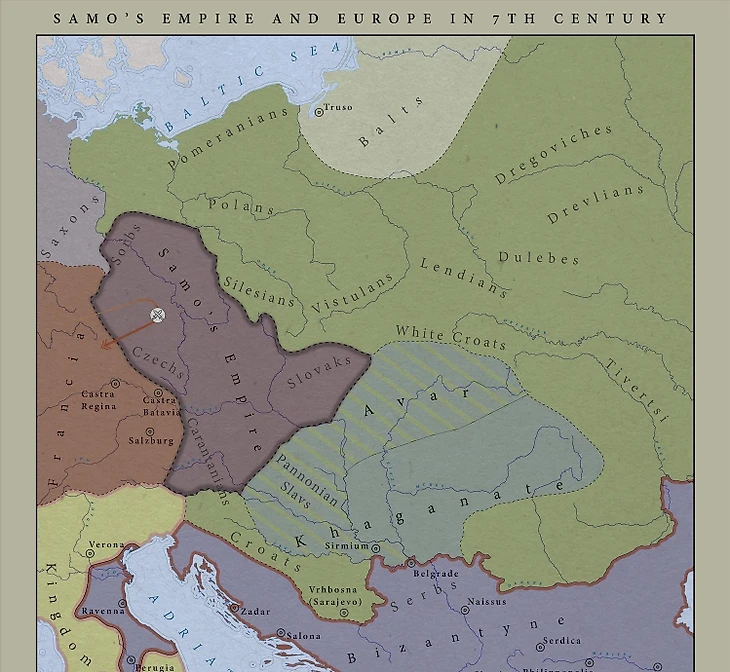Авары вступали в союзы с другими племенами или попросту завоевывали их, а затем вместе шли походами на соседей, прежде всего – на Византию и лангобардов. Где-то завоевателям удалось закрепиться. В Далмации осели будущие хорваты и сербы, а чуть севернее – предки нынешних словенцев. В 623-м вождь Само возглавил успешное восстание против аваров. Личность полулегендарная: по одним данным, он был франкским торговцем, по другим – из славян, есть также версии о его галло-римском происхождении. В любом случае Само правил на землях в верховьях Дуная, вдоль Эльбы и на северо-востоке Альп – здесь жили преимущественно славяне. Экспансия шла теми же методами, что и у аваров: через завоевание или присоединение. Попутно Само отражал нападения с востока и запада.