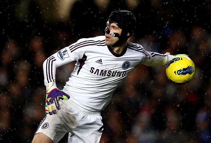 12 декабря 2011. Лондон. Петр Чех играет маске и шлеме в матче с "Манчестер Сити"