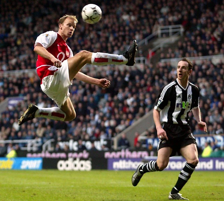 9 февраля 2003. Ньюкасл. Фирменный прием мяча, в будушем увековеченный в памятнике, от Денниса Бергкампа.