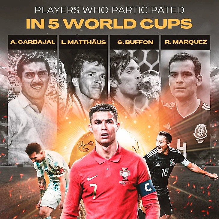 Роналду, Месси и Гуардадо могут составить компанию футболистам сыгравшим на 5-ти чемпионатах мира