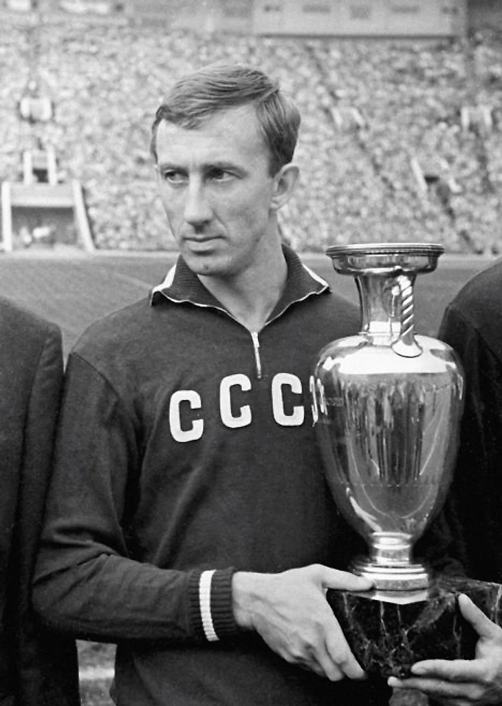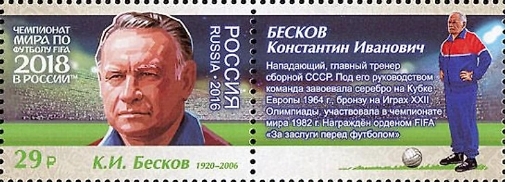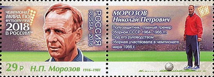 За основу для «портретной» марки взята фотография с церемонии чествования сборной СССР - победителя первого Кубка Европы - в «Лужниках».