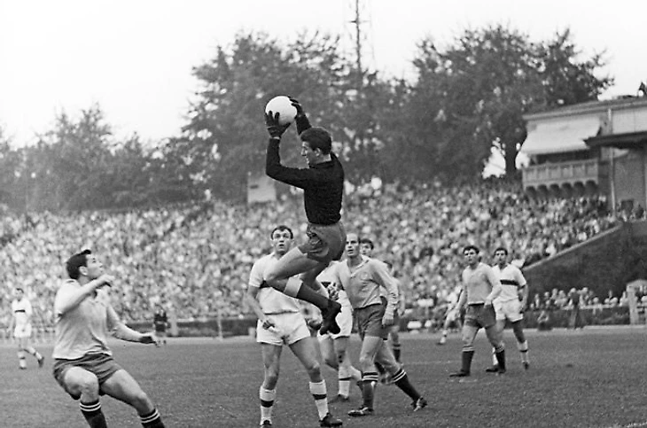 1960-е. Слава Метревели против Дмитрия Багрича в матче ЦСКА - «Динамо» (Тбилиси).