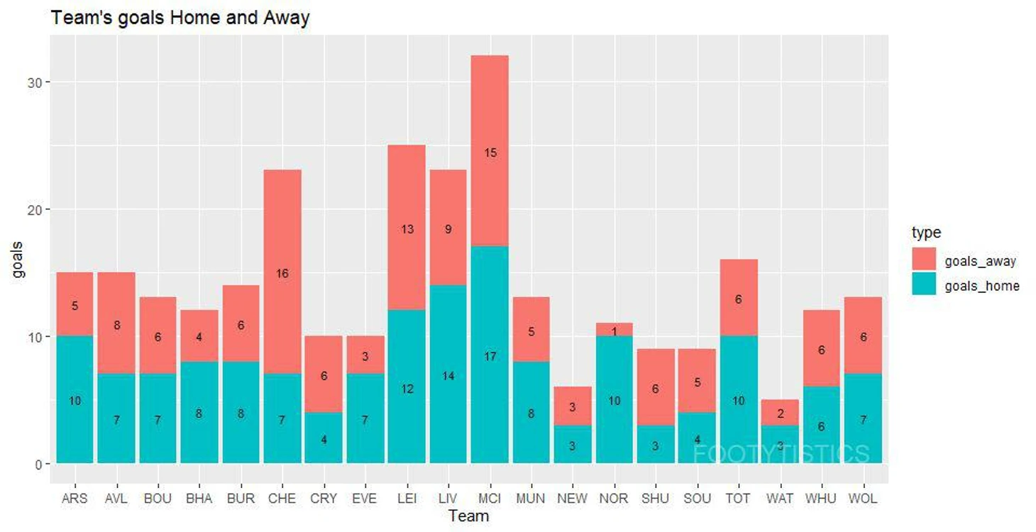 Хотелось бы поделиться графиком домашних и выездных голов.