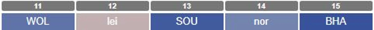 Стерлинг отдохнул в кубке и готов разрывать защиту Саута. Забил больше всех полузащитников:7 голов. Отдал 1 раз. С его фланга в прошлом матче чемпионата Сауту создали больше всех проблем Барнс и Чилвелл. Стоит ожидать того же и в этом.