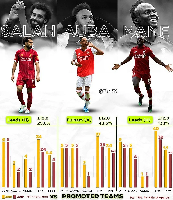 Статистика Салаха, Мане и Обамеянга против команд, поднявшихся из Чемпионшипа в двух прошлых сезонах