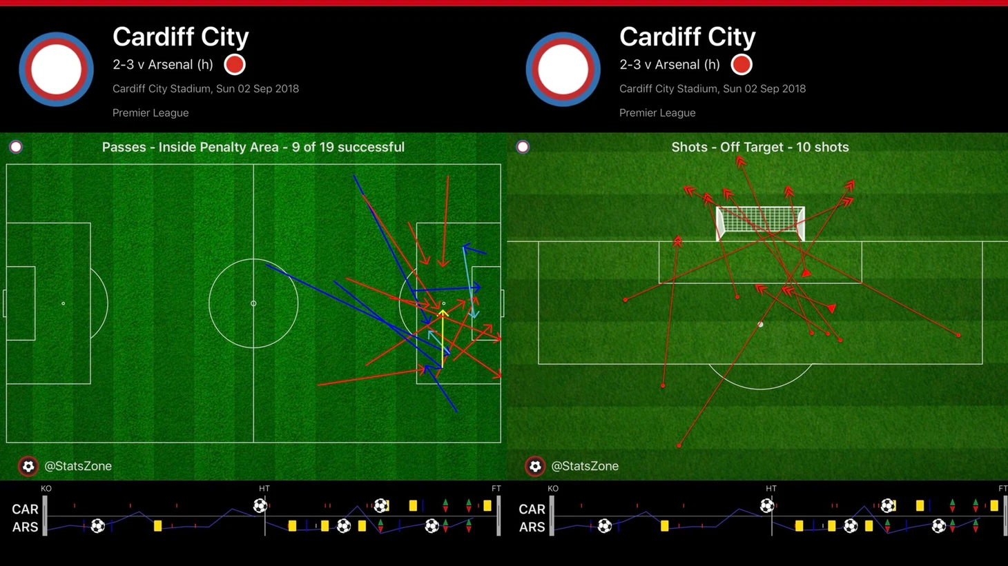 1) Меньше 50% передач "Кардиффа" в чужую штрафную стали точными. 2) Футболисты из валлийского клуба нанесли 10 потенциально опасных ударов мимо ворот