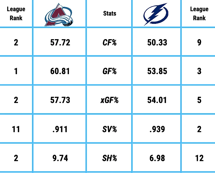 «Колорадо» — лучшая команда, с которой «Тампа-Бэй» сталкивалась в любом из этих трех финалов (у "молний" был ещё один финал в 2015, но тогда команда только начинала свой путь, и была скорее неожиданностью, а "Чикаго" был практически на пике), и они могут быть лучшей командой, с которой «Лайтнинг» сталкивались в любой момент за этот трехлетний период (но не забываем про Айлендерс-2021).