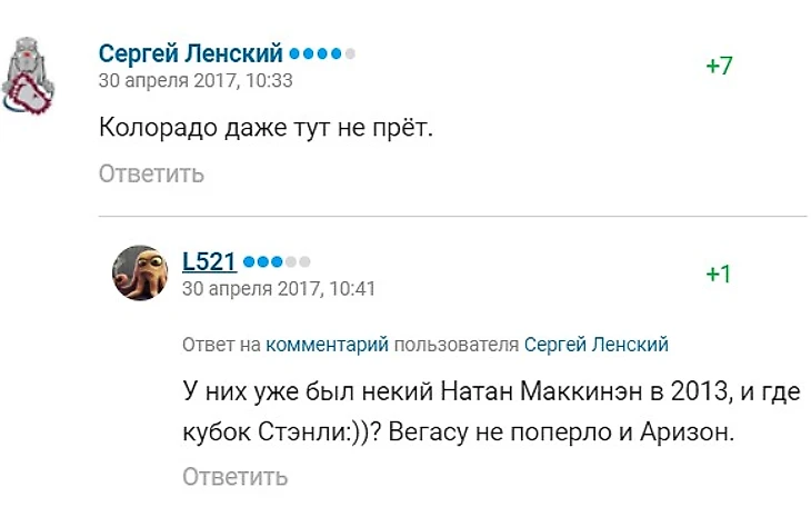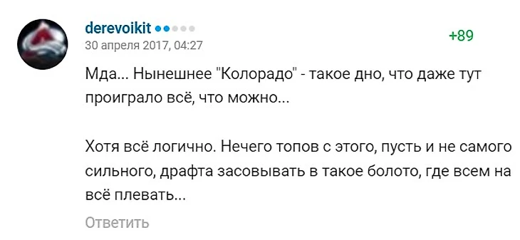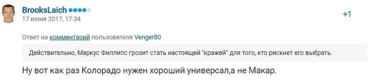 Под материале Перед драфтом 2017 для "Колорадо" тоже найдём интересный комменты. Брукс, ты тоже оказался не прав: