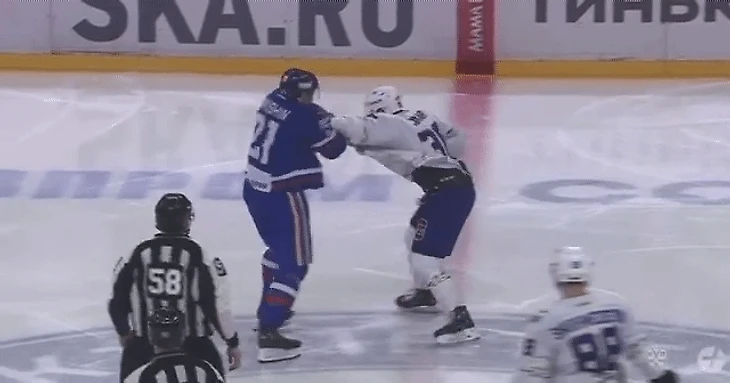 Запоминающийся момент в разгромном матче СКА и «Барыса» (7:0) случился на старте второго периода. Капитан СКА Александр Никишин сбросил перчатки, призывая к драке Энтони Камару. Нападающий «Барыса» охотно согласился и активно включился в потасовку.