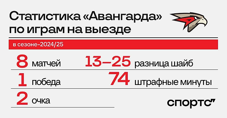 ● 74 штрафные минуты. На выезде «Авангард» часто подводит дисциплина. Особенно это заметно на фоне статистики домашних матчей – там у команды только 45 минут штрафа. В предыдущей игре с «Металлургом» (2:4), которая тоже была гостевой, «Авангард» набрал сразу 20 штрафных минут. Для сравнения – соперник в том матче вообще не удалялся.