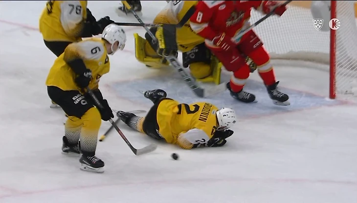 Ужасный момент в КХЛ: игрок остановил шайбу лицом – зато спас ворота