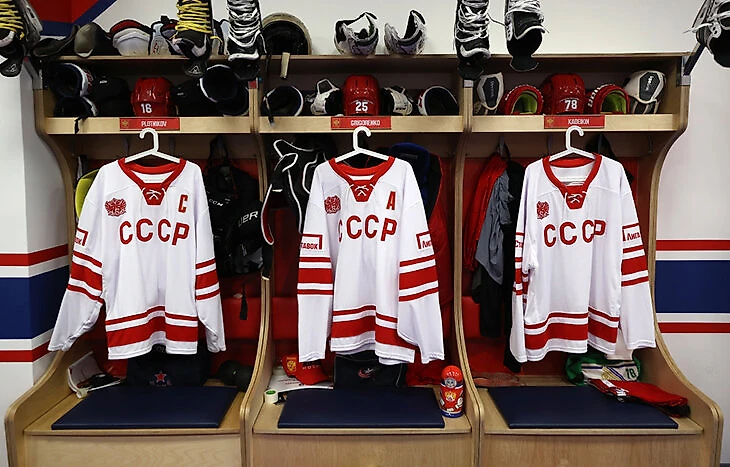 На 75-летие отечественного хоккея Россия выступила на Кубке Первого канала-2021 в специальной ретро-форме. Еще одно важное признание легендарных успехов сборной СССР, а именно – первой победы на Олимпиаде-1956. На три матча Кубка Первого канала команда выходила в красной советской форме, а против Финляндии играла в белой.