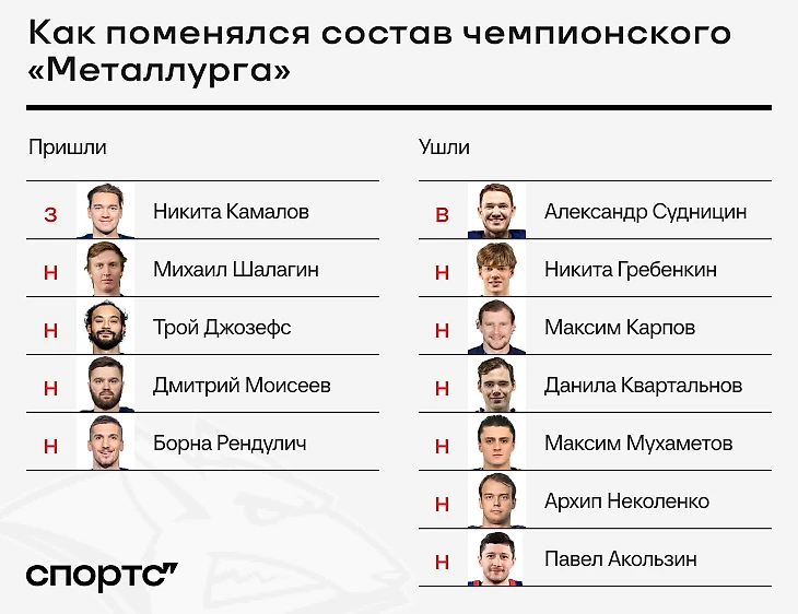 В остальном чемпионский костяк преимущественно сохранился. Важной потерей стал только Никита Гребенкин, который перебрался в НХЛ. В изменения состава мы не включили Уилсона и Башкирова, которые в клубе надолго не задержались.