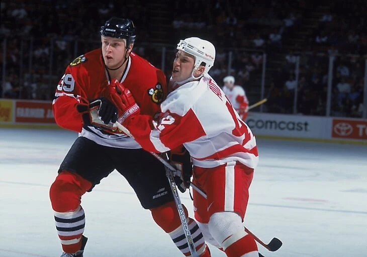 В том году у «Ред Уингс» не было права выбора в первом раунде, но у них хватало хороших новичков, главный из которых – пацан из России, Павел Дацюк. Он невероятно талантлив. Я понимал, что он пройдет в состав, так что особо не переживал из-за него. Но своей одаренностью он раздражал меня ровно настолько, что мотивировал гоняться за теми игроками, которые полагали, что пройдут в состав только потому, что были там.