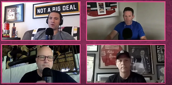 – Я, кстати, до пандемии вообще не понимал подкасты. Ну а потом начал слушать и как-то вкатился. Я просто не мог понять… То есть люди что-то записывают, а потом загружают в сеть четыре дня спустя? И это работает? А теперь я подкастозависимый! Много всякого разного слушаю. Я ваш большой поклонник, ребят. Вас прям приятно слушать. Надо будет вам как-нибудь фотографию скинуть с турнира по гольфу, где я с Джеем Барушелем играл (известный канадский комедийный актер – прим. пер.).