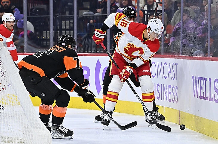 Уит: Мы любим возвращаться к самым истокам. Это будет особенно интересно в твоем случае – ведь тебе наверняка есть чем поделиться и про детство, и про молодежный хоккей. Но пока что мне хотелось бы задать тебе еще пару вопросов про нынешние времена. У меня сложилось впечатление, что, поиграв до этого в трех других командах, ты, наконец-то, обрел дом в Калгари. Тебя и в прошлом году хвалил тренер, о чем уже сказал Биз, и в этом. Как так получилось, что в Калгари ты по-настоящему раскрылся? Ведь, на мой взгляд, прошлый сезон стал для тебя лучшим в карьере. Согласен?