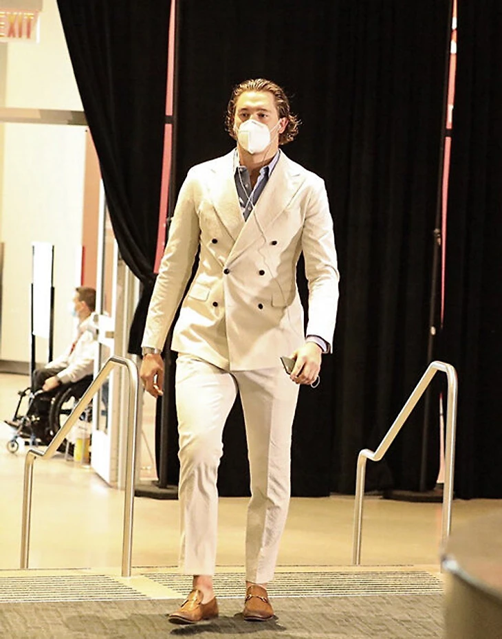Задоров: Вот вы меня все спрашиваете про моду, а я на самом деле не такой уж и модник. Я же не Мэттьюc, который для GQ снимался. Я просто люблю хорошие костюмы. Мне просто хочется хорошо выглядеть по приезду на арену. А в обычной жизни я одеваюсь, как все. Белая или черная майка, Nike, Lululemon – ничего особенного. Я же не зависаю в интернете в поиске одежды. Да, я знаю бренды, но бегать за ними считаю глупостью. У меня жена и двое детей – ну вы чего. Буду я еще деньги на всякую ##### [ерунду] тратить, которую поносил да выбросил.