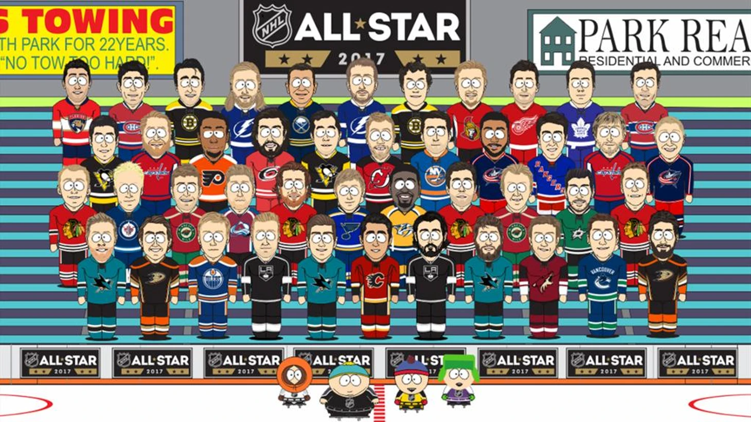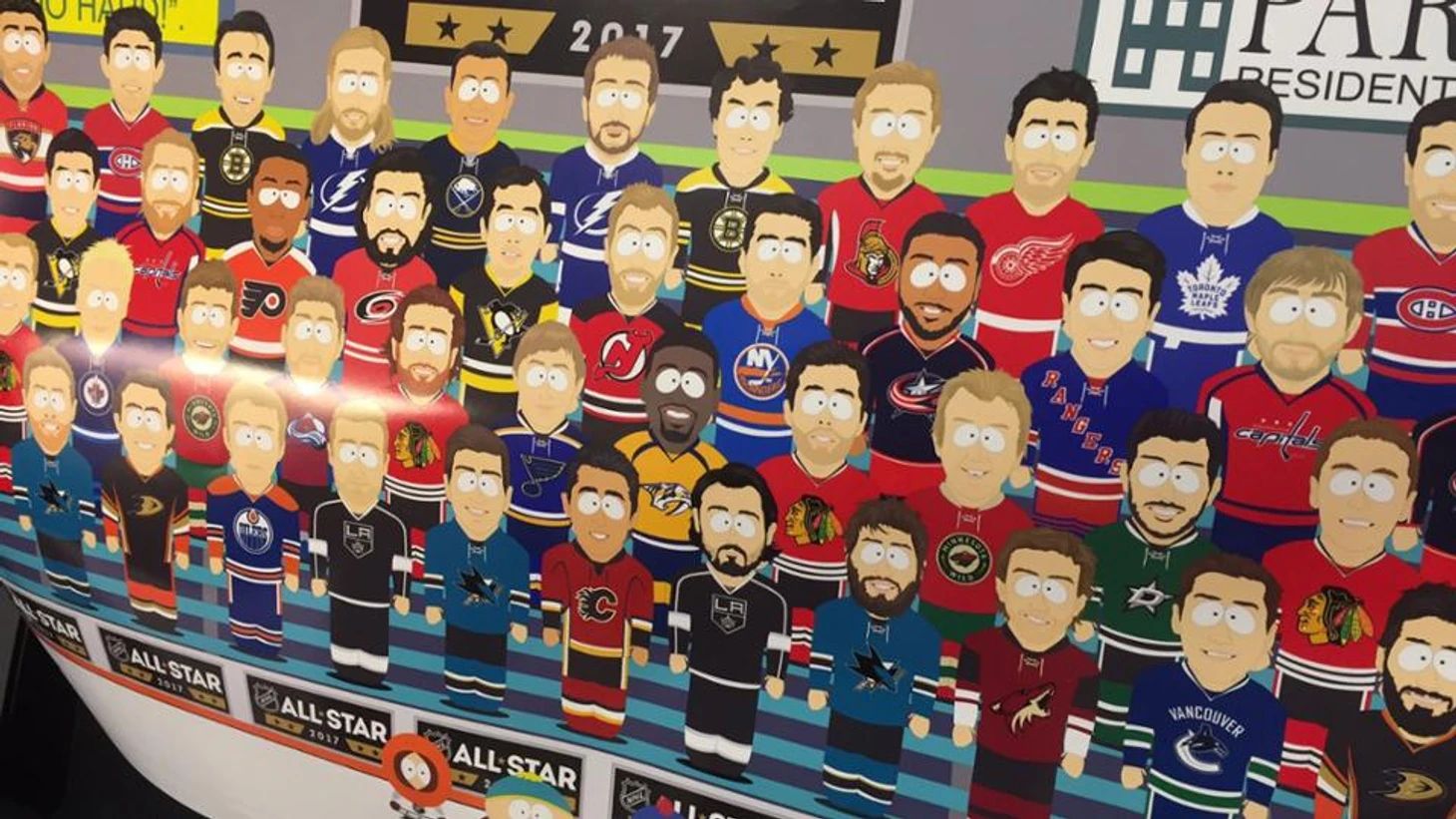 Все игроки, попавшие на мероприятие (без учета замены Евгения Малкина на Кэма Эткинсона), были изображены в стиле анимации сериала. Кроме них, на постере присутствуют и главные герои "Южного Парка" - Кенни, Картман, Стэн и Кайл.