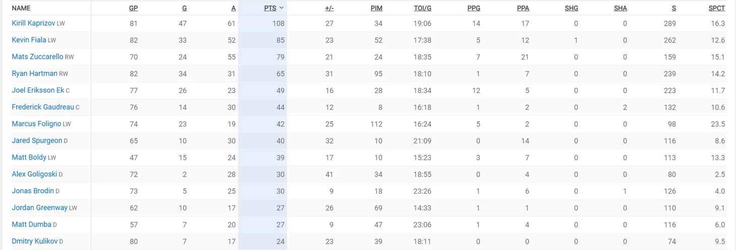 Когда мы оцениваем шансы команд, мы всегда смотрим в статистику и пытаемся понять, стала команда лучше или хуже. Открываем таблицу и видим на первом месте по очкам конечно Капризова, который в прошлом году побил кучу рекордов франшизы. Недавно, один из моих любимых блогеров «The Hockey Guy» провёл редрафт 2015 года и поставил Кирилла на второе место после Макдэвида при живых Айкеле, Марнере и Раантанене. Вот как сильно ценят Капризова за океаном, вот как оценивают его вклад в развитие команды. Сила Капризова в том ,что он подобно самым великим игрокам НХЛ, способен делать партнёров лучше. С ним Раск выдал лучший сезон, вторую молодость обретает Зукарелло. Поэтому Кирилл - такой козырь в рукаве Эвансона, который может поставить к нему любого и звено будет работать.