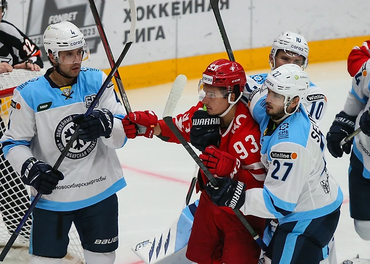 Красно-белым повезло в начале второго отрезка. Очень вовремя подсуетился около ворот Антона Красоткина опытный мастер Дмитрий Кугрышев, который с передач Максима Цыплакова и Александра Хохлачева открыл счет. 1:0. И здесь показалось, что сейчас сибиряки сбросят оборонные оковы с себя и понесутся отыгрываться. Так, по логике вещей, должно происходить, когда команда, не хватающая атакующих звезд с неба, начинает минимально уступать в счете. Но, нет. Новосибирские ребята продолжили оставлять сзади трех человек, используя усечённый вариант в атаке. Спартак отбивался, принимал на себя шайбы. Стало много обоюдных удалений, но весы не раскачивались. Как Кургышев в начале периода порешал, так все и оставалось. Да и вратарю спартачей Патрику Рыбару очень хотелось примерить золотой шлем, вручаемый лучшему игроку матча, поэтому ловил и отбивал он все что летело в его сторону.