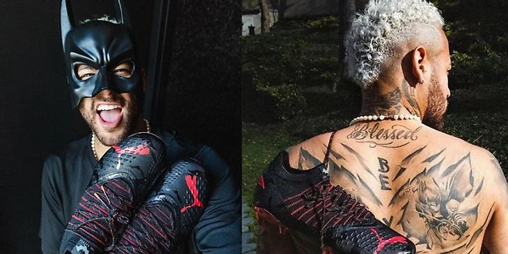 • Бэтмен – любимый супергерой Неймара. Позже это повлияло на бизнес: в феврале 2022-го выходила специальная серия бутс от Puma в честь премьеры фильма. Неймар специально играл в них в матче «ПСЖ» – «Сент-Этьен». Перед этим он сходил на показ «Бэтмена» в кинотеатр – сидел там вместе с актером Робертом Паттинсоном и режиссером Мэттом Ривзом. Еще Неймар сделал себе татуировку с Бэтменом.
