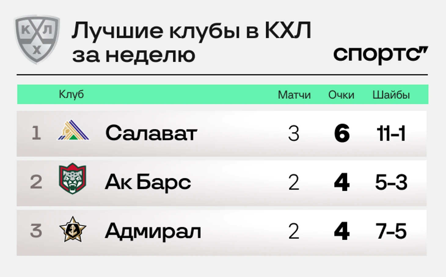 Лучшие клубы: «Салават», «Ак Барс» и «Адмирал» забрали победы во всех играх