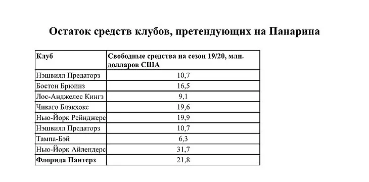 Руководство «Флориды» освобождаете платежку. Для кого? Угадайте. Совсем недавно пришла новость, что Панарин отказался продлевать контракт с «Блю Джекетс».Клуб из Огайо провёл совещание по поводу того, что делать с Артемием. Для него уготовили список клубов для обмена, в которых числится и «Флорида».