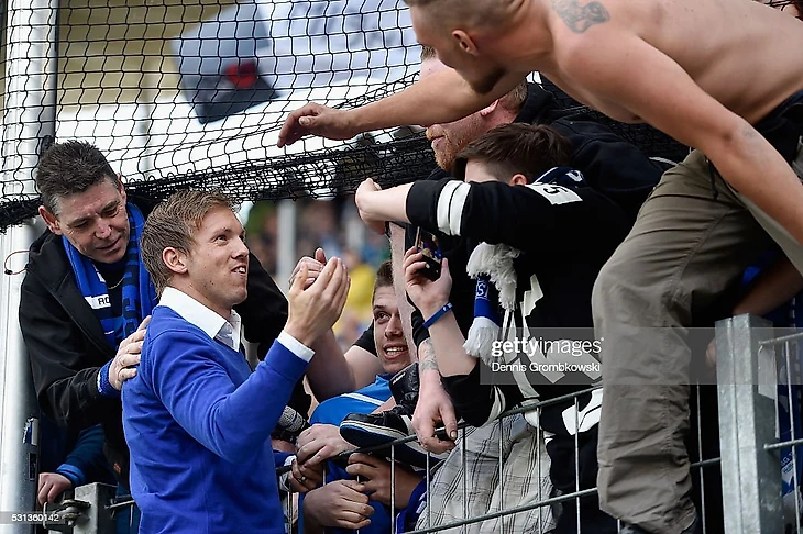 Юлиан Нагельсманн все же поборол свою фобию, и преодолевая ограждения отправился на фанатскую трибуну.