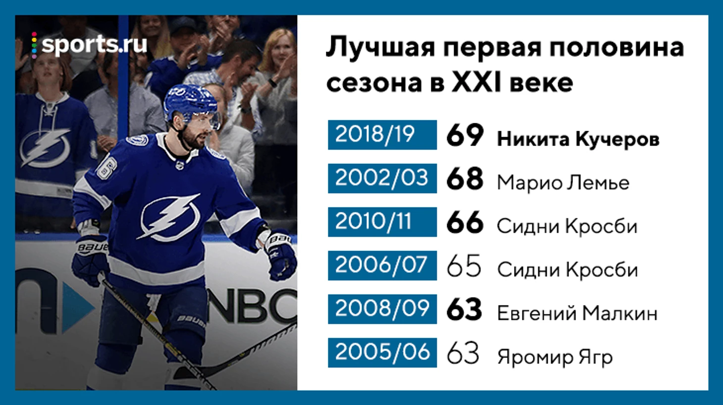 В прошлом году Никита Кучеров набрал 57 очков после 40 игр – и его старт тогда казался чем-то нереальным, историческим, а сам Куч вроде бы обеспечил себе «Харт» и «Арт Росс» после первой половины сезона. Сейчас у Кучерова после половины сезона 69 очков, но всего лишь пару игр назад он стал лидером бомбардиров НХЛ, обогнав невероятных парней из «Колорадо». Лига в межсезонье сделала многое, чтобы результативность игр еще выросла – по максимуму обкорнала вратарскую атрибутику, например, но эти цифры все равно можно назвать выдающимися.