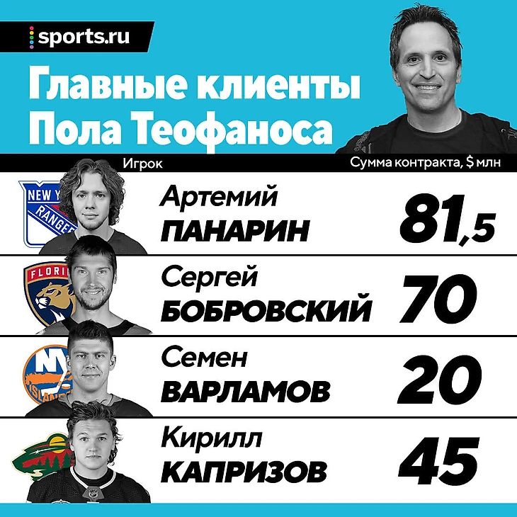 От редакции. Впервые этот текст опубликован в августе 2019-го – после того, как Панарин подписал контракт с «Рейнджерс» и выдал громкое часовое интервью Sports.ru. Но этой осенью история про Теофаноса вновь актуальна – для еще одной русской звезды НХЛ он выторговал роскошный контракт.