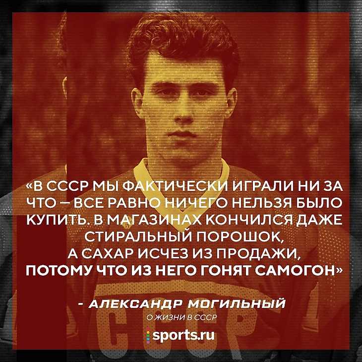 «Когда мои родители вернулись в свою квартиру в Хабаровске, там был погром, пропало несколько вещей. Моя мать работала продавщицей — сомневаюсь, что она сохранила эту работу», — продолжал Могильный, который вообще не должен был играть на чемпионате мира, с которого сбежал. Тихонов тогда сделал большой аванс игроку, у которого были дисциплинарные проблемы в чемпионате.