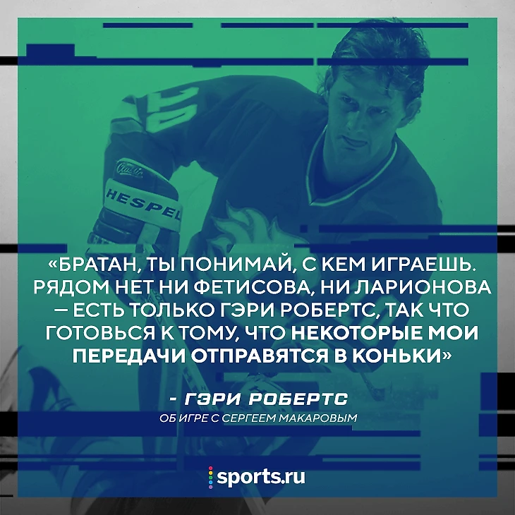 Макаров, как известно, перевернул НХЛ тем, что заставил ввести возрастное ограничение для претендентов на приз новичка года. Но было и кое-что еще, за что газета Globe and Mail назвала его «первооткрывателем хоккея, основанного на владении». Постоянный партнер Макарова Гэри Робертс рассказывал: «Тогда все играли очень примитивно. И вот я вбрасываю шайбу в угол, а Сергей на меня смотрит и качает головой. На скамейке он мне говорит: «Робс, зачем ты вбрасываешь? Пасуй мне и иди на пятак». Он постоянно просил делать пасы в клюшку, а я ему отвечал: «Братан, ты понимай, с кем играешь. Рядом нет ни Фетисова, ни Ларионова — есть только Гэри Робертс, так что готовься к тому, что некоторые мои передачи отправятся в коньки».