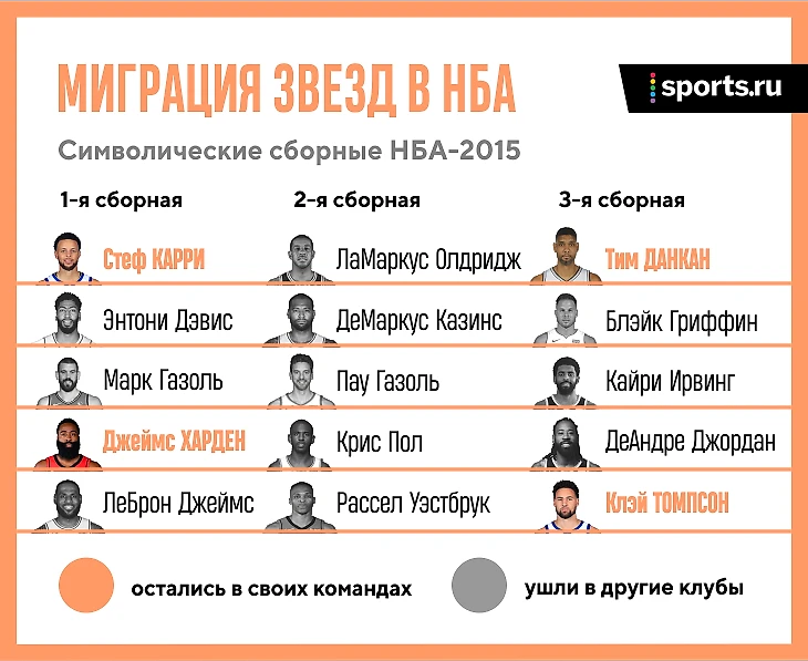 Зато наследие очень важно в другом виде спорта. Культурологический сдвиг в баскетболе запустил один скромный парень, который просто вышел в прямой эфир главного американского канала и сообщил о смене команды так буднично, словно рассказал, что ел на завтрак. До «Решения» Леброна Джеймса в стаи сбивались только совсем старые деды — даже легендарному «Большому трио» «Бостона» в 2008-м было уже сто лет на троих.