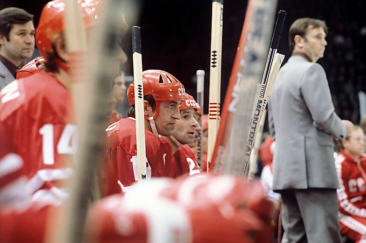 Правда, игра во втором периоде не слишком изменилась: до Мышкина долетело всего лишь два броска – и несмотря на скользкий счет, преимущество нашей сборной казалось тотальным: 30-10 по броскам после двух периодов. Это и стало главной проблемой, над которой надо было работать Бруксу в перерыве: ведь без бросков, как он говорил, команда лишалась и форчекинга, потому что советская сборная имела полный контроль над шайбой.