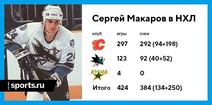 И в «Сан-Хосе» Макаров оказался даже успешнее, чем в «Калгари». В 35 он стал лучшим бомбардиром команды, которая всего лишь за год добавила 58 очков в регулярке, забил восемь голов в плей-офф, где «Шаркс» не хватило одной победы до финала конференции уже на третий год жизни команды.