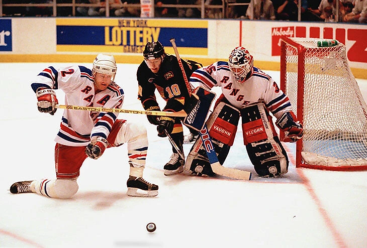 7. НХЛ - запомнился именно 94-й год. Хотел сначала болеть за Буре, но по ходу серии переобулся - очень впечатлили брутальные Марк Мессье, Брайан Линч, а также повлияла личная симпатия с Сергею Немчинову (болел за него на стадионе еще когда он играл за Крылья Советов), ну и очень нравились Сергей Зубов и Алексей Ковалев. Хотя, наши не были в Рейнджерз главными звездами (в отличие от Буре в Ванкувере), но, так сказать, массой перетянули к себе симпатии.