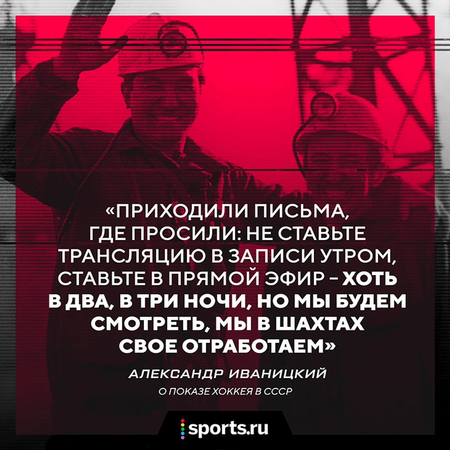 Когда он хотел посмотреть матч, была фраза удобоемкая: «По просьбам трудящихся мы меняем сетку вещания и показываем вам прямую трансляцию СССР – Канада». Но был запрос и от народа – приходили письма, где просили: не ставьте трансляцию в записи утром, ставьте в прямой эфир – хоть в два, в три ночи, но мы будем смотреть, мы в шахтах свое отработаем. Леонид Ильич хотел, письма трудящихся шли – хоккея мы [Гостелерадио СССР] показывали много и густо.
