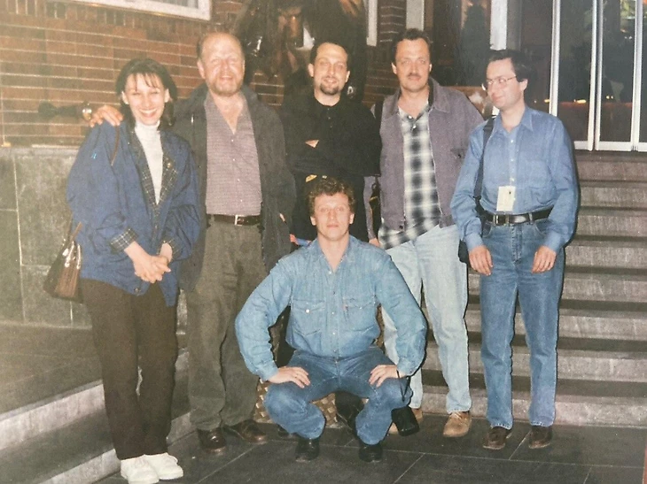ЧМ-1998 в Швейцарии. Дмитрий Федоров и хоккейная бригада ОРТ: Виктор Гусев, Андрей Голованов и Евгений Кузнецов