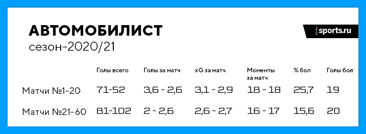 Вот очень показательное сопоставление первых 20 и оставшихся 40 игр «Авто» в этой регулярке: