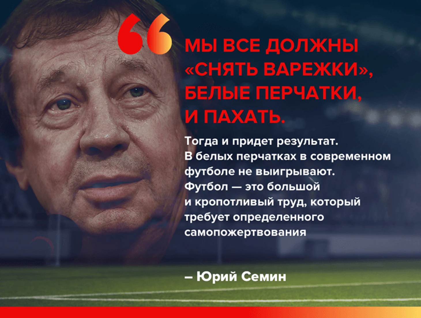 Но «Динамо» смотрелось грозно только в новостях, на деле вышел провал: новички морщились от холода и безлюдных стадионов, а тренер вечно повторял, что нужно время. Но его не было: за 8-е место Вортманна уволили, Федорычев распродал часть звезд и подкорректировал стратегию. Семин как раз и был частью новой политики, развернутой в сторону своих. Клуб посчитал, что русскому Фергюсону нужны местные герои, и пригласил Овчинникова, Семшова и Хохлова. Тренер наслаждался, понимая, что ради него готовы почти на все: «Мне интересно работать. Сделаю максимум, чтобы «Динамо» поднялось на высокий уровень. Тот, которого оно заслуживает. Тем более все основания и условия для этого есть. Есть высококвалифицированные игроки».
