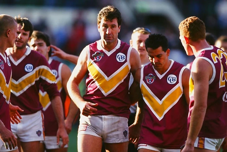 Клуб снова провел агрессивную политику по привлечению игроков, был подписан игрок «лебедей» Варвик Каппер. В 1988 и 1989 годах клуб снова не смог ничего показать, тринадцатое и десятое место в регулярном чемпионате соответственно. Питер Найт был уволен после восьмого раунда. Психолог клуба Пол Фелтем взял на себя обязанности главного тренера до конца сезона. Также на этом этапе клуб находился под серьезным финансовым давлением. Посещаемость матчей была так же на низком уровне, из-за плохой работы с болельщиками и большого расстояния между Голд Костом и Брисбеном. Развал бизнеса Кристофера Ньюджента, и его отъезд в Испанию в 1989 году почти привел к распаду клуба. В течении 1990 года, игроки клуба угрожали забастовкой, но Кронин продал клуб, клуб перешел под управление AFL, а после был продан Рувиму Пелерману. AFL тратил значительные суммы денег, чтобы помочь клубу в столь тяжелое время. Так же предоставлены высокие пики на драфте игроков, и специальные рекрутинговые зоны. Это позволило клубу из Брисбена набрать таких будущих звезд как Майкл Восс, Джейсон Акерманис, Кларк Киттинг, Стивен Лоуренс и Деррил Уайт.